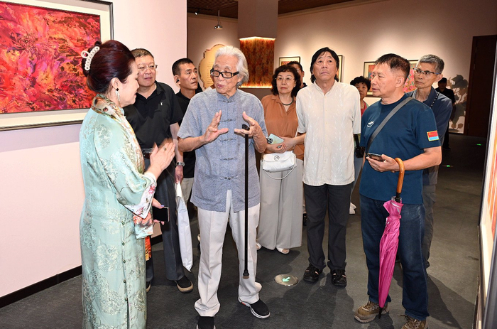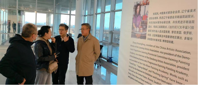 在创作特点上,其一,时间轴线清晰,主题层层递进。从兴城的“跨文化对话”,到沈阳的“传统当代转化”,再到上海的“在地性突破”,最后到丹东的“全景式回顾”,形成了“国际—国内—地域—本土”的空间拓展逻辑,以及“对话—深耕—突破—总结”的创作演进脉络,展现了艺术家全面的创作能力与系统的艺术思考。其二,艺术语言个性鲜明,中西融合自然。在花鸟领域,以“色彩叠加、去物象化”打破传统程式;在山水领域,以“极化色彩+边地符号”重构青绿叙事;在跨文化对话中,既坚守笔墨精神与地域符号,又吸纳西方艺术的视觉张力,材料上融合国画颜料、岩彩与丙烯,形成了辨识度极高的个人风格。其三,场域适配精准得当,功能各有侧重。兴城海上美术馆侧重“国际交流与文旅融合”,沈阳博物馆侧重“经典传承与大众美育”,上海朵云轩侧重“学术探索与南北对话”,丹东辽东美术馆侧重“在地认同与全景呈现”,通过精准匹配不同场域的定位与受众需求,实现了艺术价值的最大化。其四,身份锚定坚定明确,内外兼修。始终以“鸭绿江流域/辽东边地”为创作根基,以“满族艺术家”为文化标识,同时以开放的姿态参与国际对话,形成了“扎根本土、放眼世界”的文化身份定位,既不陷入狭隘的地域主义,也不迷失于全球化的同质化表达。