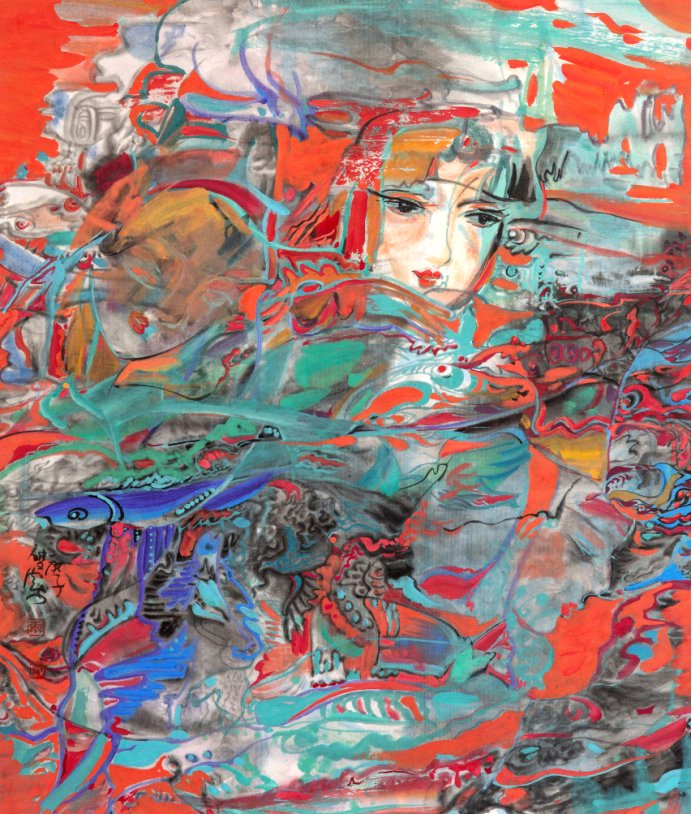 展览中,张双凤精选了30余幅代表作与新作,涵盖花鸟、人物两大系列,既呈现了她成熟的艺术风格,也暗藏着与西方艺术语言的对话意涵。花鸟系列中,《洛阳金粉舞霓裳》《香风含静和》等作品延续了她“色彩叠加、去物象化”的创新手法,墨色与彩墨的交融既有东方美学的含蓄韵味,又以强烈的视觉张力呼应了西方抽象艺术的表达逻辑;人物系列则聚焦满族民俗与乡土情怀,《吉祥格格》《太平鼓韵》等作品通过对萨满文化、满族节庆场景的艺术化诠释,将地域文化符号转化为具有普遍性的人文表达,让比利时观众透过作品读懂中国边地的文化肌理与生命热忱。