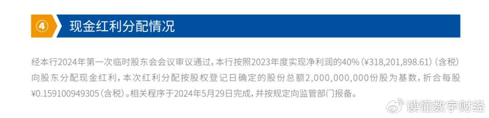 同时,其2023年度的股东分红在40%的高比例状态。这一比例超越了同期许多经营良好的明星银行,上市银行的分红比例多在30%上下,而招行银行也仅在35%左右。