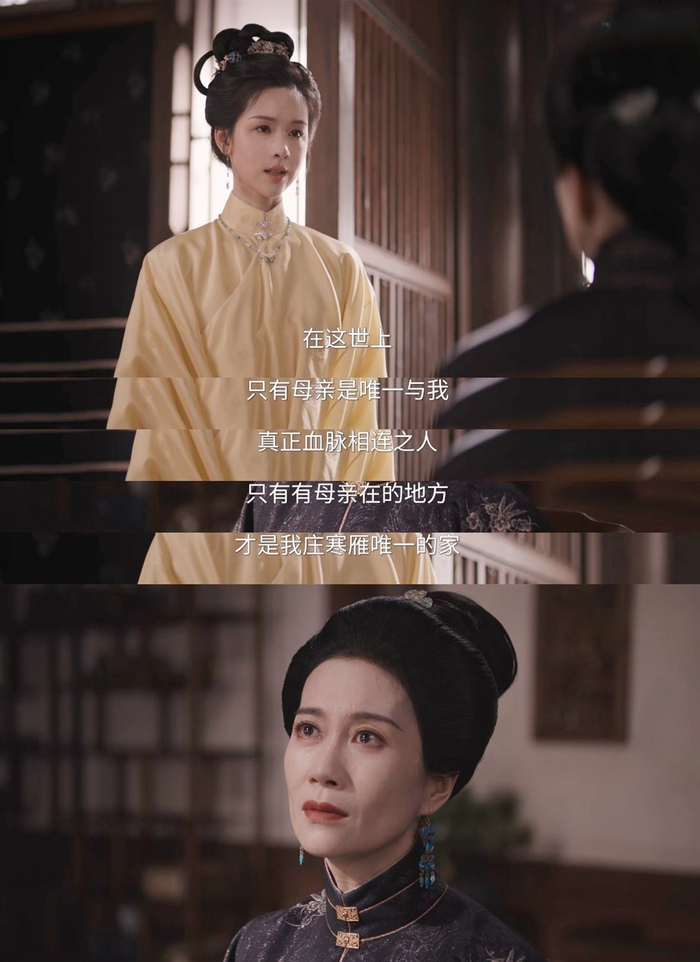 而结合时代来看,这部剧以明代为背景,陈都灵饰演的庄寒雁出生时因为一句谣言被认定为不祥之人,被送至千里之外的儋州。从嫡女到弃女,受尽十多年辛酸苦楚。一朝叔婶遭难,她千辛万苦回到庄家。对从未谋面的家人,她并不清楚他们的底细。尤其对生母阮惜文,这位她常常听闻,陌生又熟悉的京城贵女。但令她想不到的是,母亲并非传闻中那般知书达理,温柔娴静。