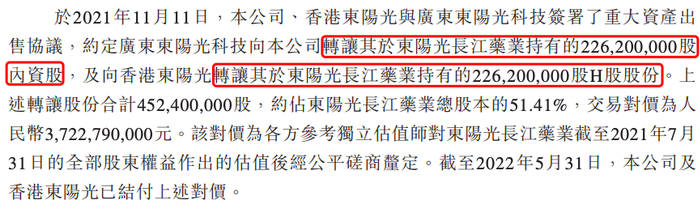 东阳光药业持有港股上市公司东阳光长江药业(01558.HK)51.41%的股权,东阳光药业已提出私有化方案,将以吸收合并方式将东阳光长江药业私有化,并将根据换股比率向全体换股股东发行H股,作为换股的对价。
