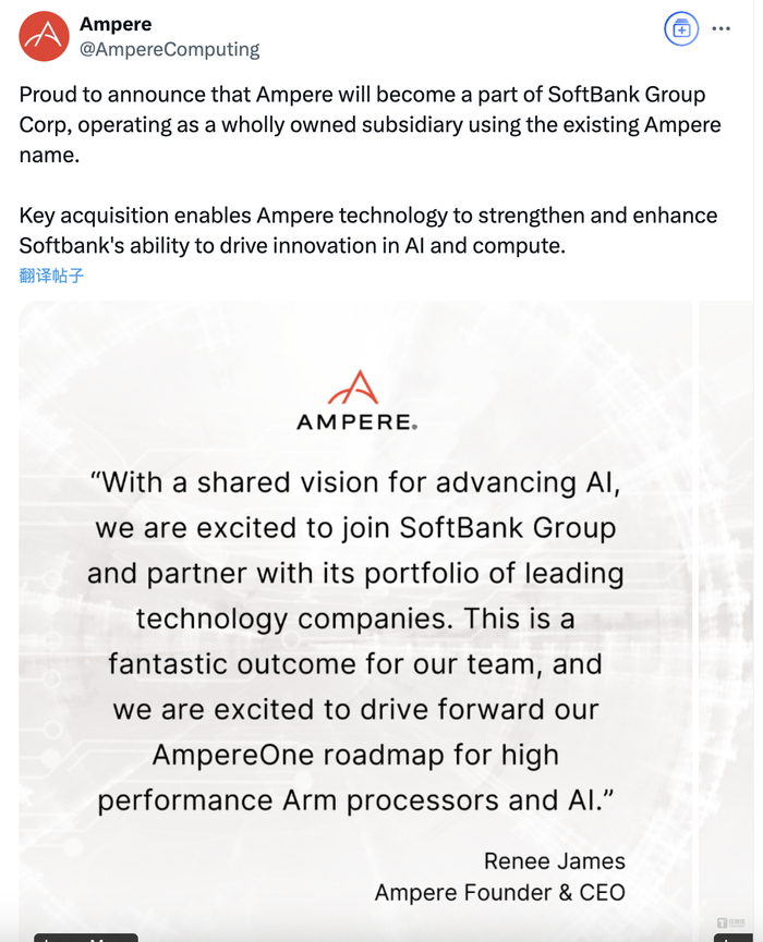 不过,软银对Ampere收购价格低于两年前。2021年,软银入股Ampere的时候,该公司估值高达80亿美元。