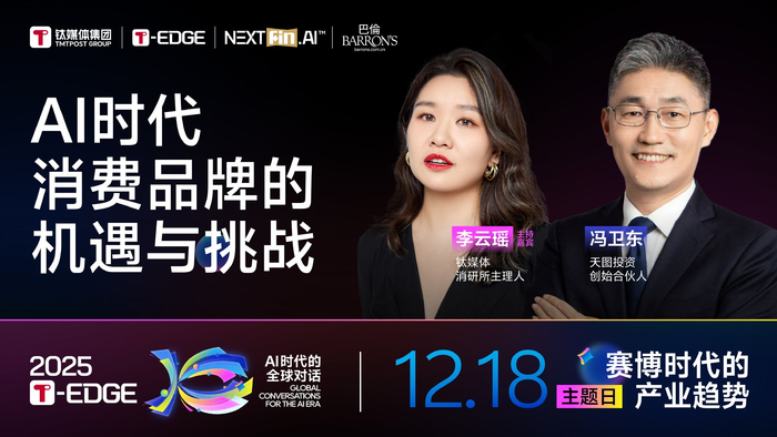 在“AI时代消费品牌的机遇与挑战”的对话中,天图投资创始合伙人冯卫东与钛媒体消研所主理人李云瑶对2025年消费市场的风向变幻,进行了深入的探讨。