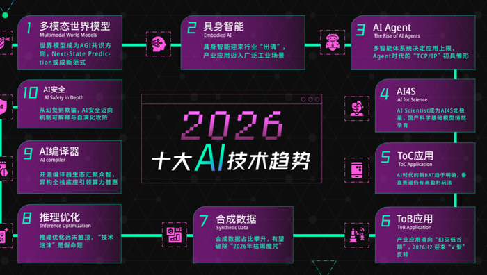 2026年1月8日,北京智源人工智能研究院(以下简称“智源研究院”)发布年度报告《2026十大AI技术趋势》。报告指出,人工智能的演进核心正发生关键转移:从追求参数规模的语言学习,迈向对物理世界底层秩序的深刻理解与建模,行业技术范式迎来重塑。
