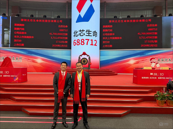 北京时间2026年2月5日,启明创投投资企业、中国本土创新医疗器械领军企业北芯生命成功登陆科创板。北芯生命(688712.SH)发行价为17.52元/股,开盘价50.31元/股,市值209.8亿元。