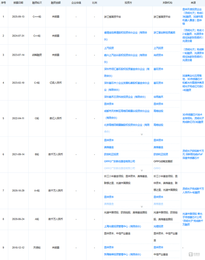 成立不到八年,完成多达9轮融资,灵明光子的融资履历堪称豪华。小米长江产业基金、高榕资本、真格基金等一线风投,以及OPPO、上汽集团等产业资本相继入局。特别是2025年9月完成的C3轮融资,引入了浙江省国资平台近亿元投资,显示了地方政府对这条硬科技赛道的重视。资本的密集“投票”背后,是对SPAD技术广阔前景的共识。