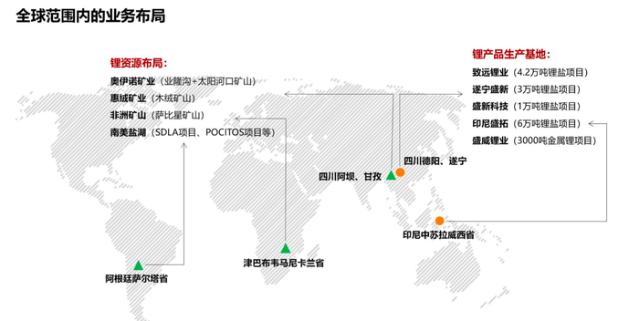 其中,奥伊诺矿业在川西地区的金川县拥有业隆沟锂辉石矿采矿权和太阳河口锂多金属矿详查探矿权,其中业隆沟锂辉石矿已查明Li₂O资源量16.95万吨,平均品位1.34%,项目已于2019年11月投产,原矿生产规模40.5万吨/年,可生产锂精矿约7.5万吨/年,太阳河口锂多金属矿目前处于探矿权阶段;Max Mind津巴布韦拥有位于津巴布韦萨比星锂钽矿项目总计40个稀有金属矿块的采矿权证,其中5个矿权的主矿种Li₂O资源量8.85万吨,平均品位1.98%,项目已于 2023年5月投产,原矿生产规模99万吨/年,可生产锂精矿约29万吨/年,其他35个矿权处于勘探阶段;此外就是惠绒矿业旗下的木绒锂矿,生产规模为300万吨/年,目前正在积极推进矿山的开发建设;另外,公司拥有阿根廷SDLA盐湖项目的独立运营权,项目年产能为2500吨碳酸锂当量,还在阿根廷投资了Pocitos、Arizaro等多个盐湖勘探项目,并积极推进其勘探工作。