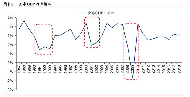 受日本房地产泡沫破裂(90 年代初)、欧洲货币体系危机(1992~1993 年)、美国科技互联网泡沫破裂及新经济危机(21 世纪初)、美国次贷危机及其衍生的全球金融危机(2007~2009 年)等多重因素影响,1987~2019 年全球宏观经济曾先后经历 3 次较大幅度的增速下滑,期间对全球装备制造企业的经营稳定性造成了较大压力。