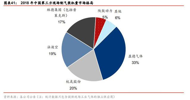 目前,杭氧股份已实现 10 万方空分设备成套技术国产化,达到国际领先水平(2018 年年报),盈德气体已具备 6 万方空分设备成套技术(公司官网),沈鼓、陕鼓已完成大型压缩机组、膨胀机等关键部机的国产化配套(2018 年年报)。我们认为,在已突破设备核心技术的情况下,国内厂商取得更高市场份额的发展路径将更为通畅。