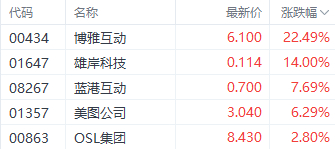 加密货币概念股中,博雅互动(00434.HK)、雄岸科技(08267.HK)、美图公司(01357.HK)分别上涨22.49%、14%、6.29%。