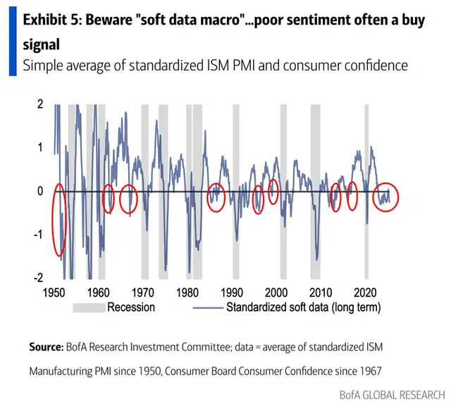 该行强调,“软数据”中包含的情绪与经济实际情况之间的差距越来越大。从历史上看,如果对经济的悲观情绪最终没有演变成一场真正的衰退,那就会引发股市的大幅上涨。