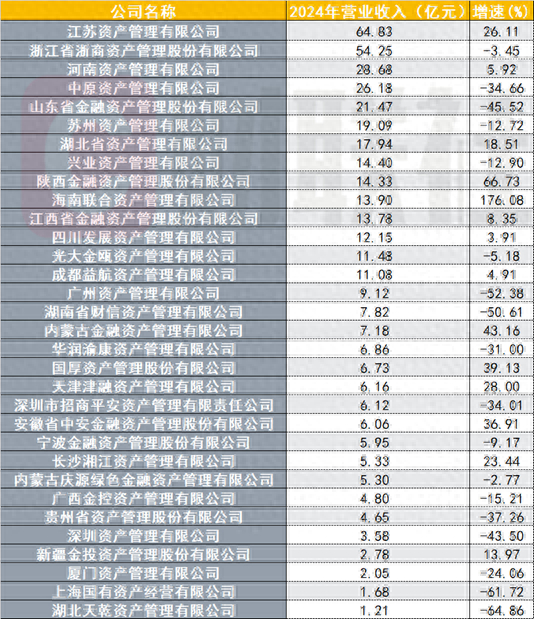 图:2024年地方AMC营业收入排名
