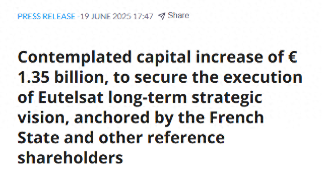 法国财政部在声明中表示,“这一举措标志着Eutelsat战略与财务路线图的关键阶段,加快了公司的去杠杆进程,同时确保其拥有实施发展计划所需的资源。”