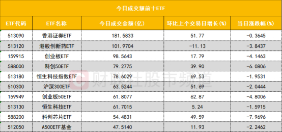 从成交额前十的ETF来看,香港证券ETF(513090)成交额位居首位,港股创新药ETF(513120)成交额位居次席。