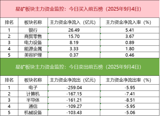 从主力板块资金监控数据来看,银行板块主力资金净流入居首。