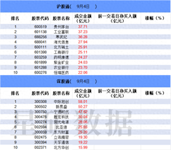 从沪股通前十大成交个股来看,贵州茅台位居首位;工业富联和寒武纪分居二、三位。