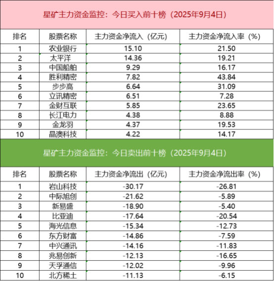 主力资金流出前十的个股所属板块较为杂乱,岩山科技净流出居首。