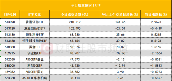 从成交额前十的ETF来看,香港证券ETF(513090)成交额位居首位,港股创新药ETF(513120)成交额位居次席。
