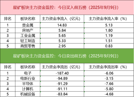 从主力板块资金监控数据来看,贵金属板块主力资金净流入居首。