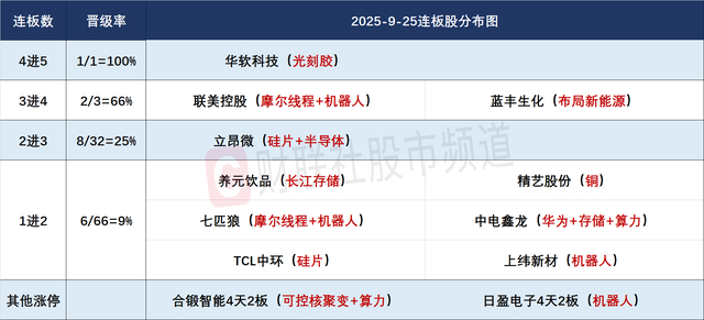 连板晋级率回升至33.33%,最高标华软科技以一字涨停晋级5连板,但其余几只连板股均以巨量换手形式晋级,此前20厘米连板最高标向日葵在一度实现3进4后迅速炸板回落收出长上影,反映高位股方向整体仍维持大分歧,杭电股份、福龙马、大众公用等多股遭遇跌停。宁德时代、阳光电源等创业板权重大票继续批量创出历史或阶段新高,反映资金向主线热点进一步聚焦,并不利于高位投机小票抱团。