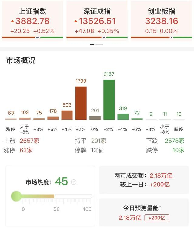 财联社9月30日讯,今日市场全天震荡分化,三大指数均小幅收红。科创50指数表现强势,盘中涨超2%续创近4年新高。沪深两市成交额2.18万亿,较上个交易日放量200亿。盘面上热点快速轮动,有色金属板块领涨两市,博迁新材2连板,锡业股份涨停。存储芯片概念股延续强势,中电鑫龙7天4板,江波龙20cm涨停续创历史新高。电池概念股反复活跃,天际股份成功晋级3连板.下跌方面,大金融方向走势疲软,银行、保险板块跌幅居前。截至收盘,沪指涨0.52%,深成指涨0.35%,创业板指涨0.00%。