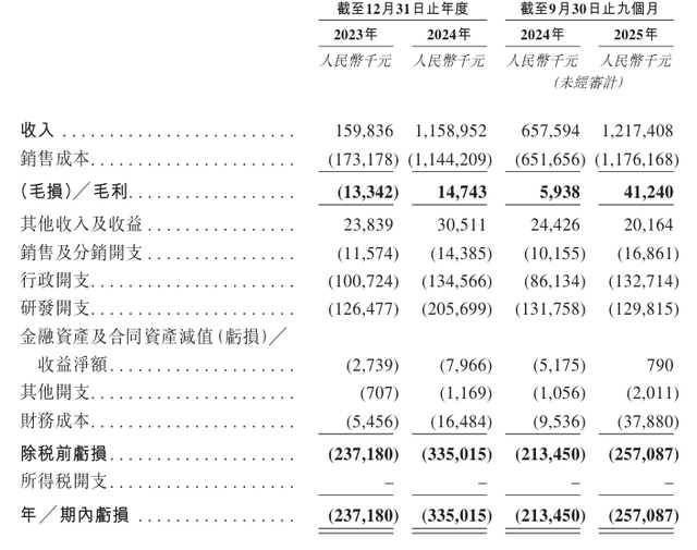 近年来,臻驱科技业绩仍处于亏损状态。其招股书显示,臻驱科技2023年、2024年营收分别为1.6亿元、11.59亿元;报告期内亏损分别为2.37亿元、3.35亿元。2025年前三季度营收为12.17亿元,毛利为4124万元,报告期内亏损为2.57亿元。