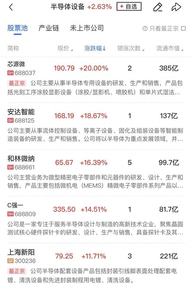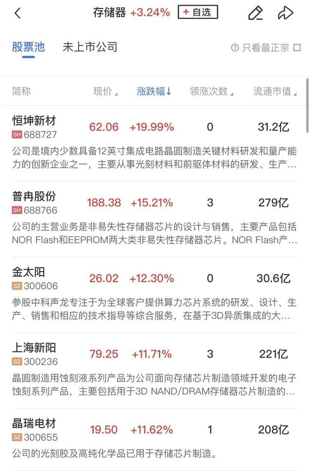 存储芯片同样涨幅居前,芯源微、盈新发展、园林股份涨停,普冉股份、精智达、恒烁股份、香农芯创等涨幅居前。