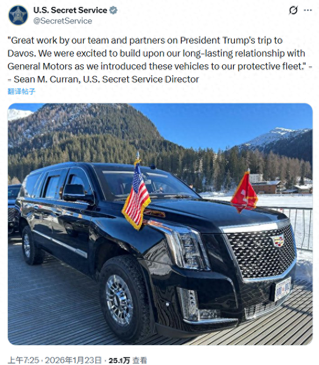 财联社1月23日讯(编辑 史正丞)就在本周全球股民密切关注美国总统特朗普的达沃斯之行时,一些眼尖的汽车爱好者发现:美国总统的装甲专车换新了。