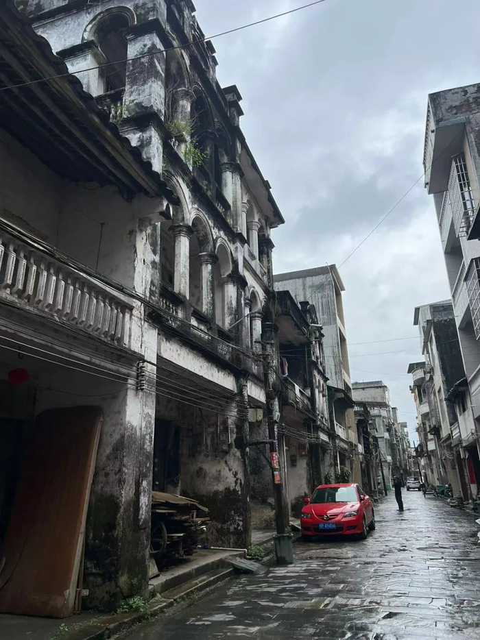 这些旧时的建筑遗存,零星地夹杂在一栋栋新起的楼房之内,门扉紧闭、不闻人声,偶尔见一两户的二楼廊中悬挂着衣物,却不知那究竟是仍有人居,还是邻人借用了这通风遮雨的便利。
