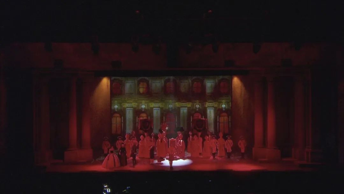 图片来源:音乐剧《摇滚莫扎特》巴黎版在“父亲的吼叫信”场景中,则需要根据最终想要的舞台效果,来选择呈现投影的幕布。