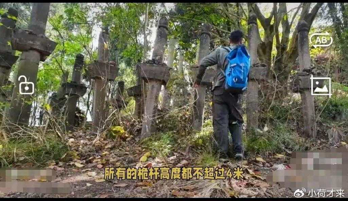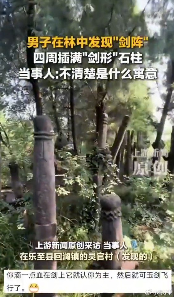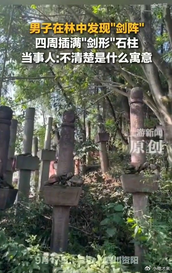 9月17日,四川资阳。男子在受访时表示在林中发现剑阵四周插满剑形石柱。