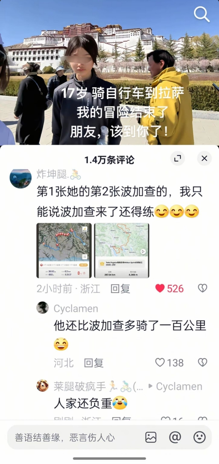 17岁女生,自称从成都骑自行车到拉萨318国道2160公里,20天就骑完了!这速度比环法冠军还快……骑完依旧肤白貌美!