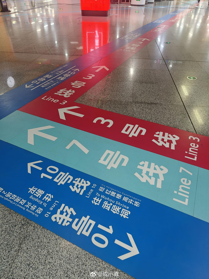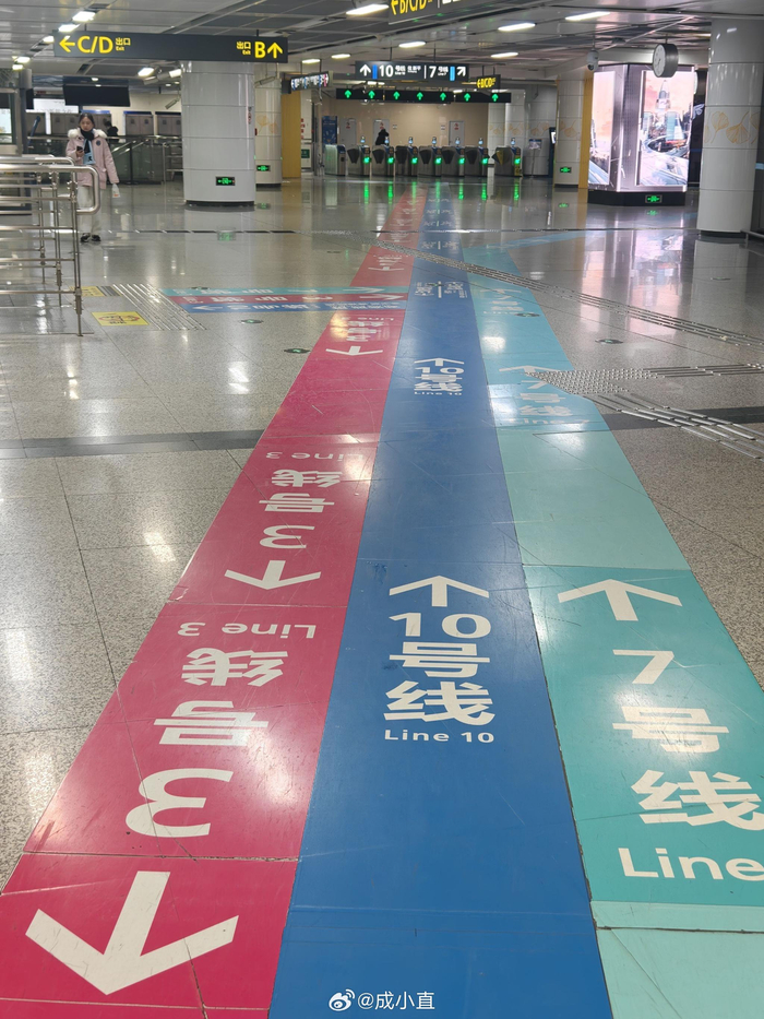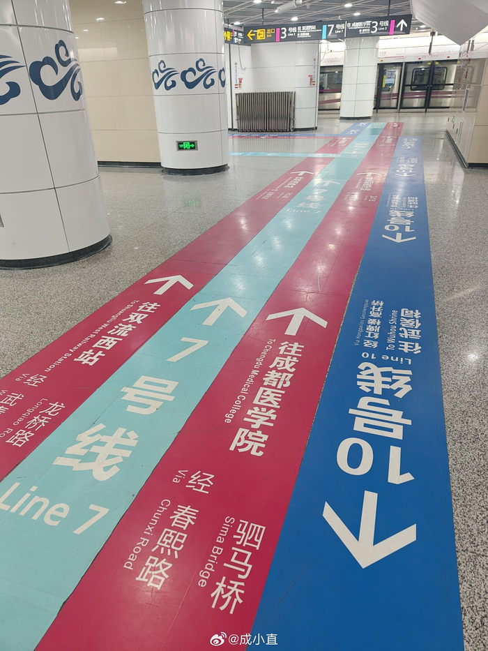 成都地铁站的指示标,是真的太友好了!头上有,墙上有,地上也有……标识非常清晰,一眼就知道该往哪里走!我也坐过好几个城市的地铁在这方面,成都确实做的不错……