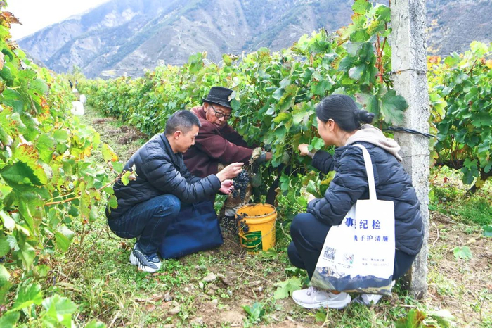 阿坝州小金县纪检监察干部在美兴镇下马厂村回访了解葡萄销售情况,推动解决群众急难愁盼问题。(叶海霞/摄)以“案”破题,坚持“办案开道”