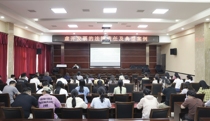 四川省税务系统工作人员正在向企业代表普及“开票经济”的危害和典型案例。