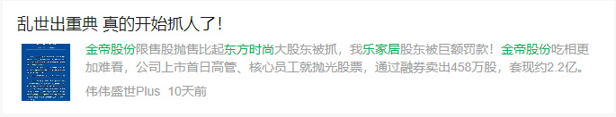 前一阵子我乐家居、东方时尚皆因违规减持被监管层重罚,还一度引起热议,金帝股份上市不久就逼空自己的奇葩操作,更是给大家开了眼。