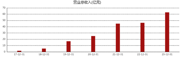 正是凭借盲盒模式,泡泡玛特的总营收从2017年的1.58亿人民币,一路飙涨到2023年的63.01亿。