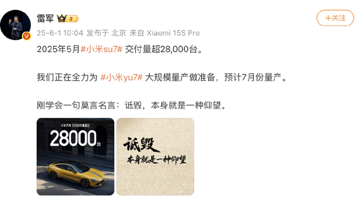 在网友看来,这是雷军对余承东言论的隔空回应。不过,雷军随后编辑了这条微博,删除了这句话,仅留下了图片和小米汽车相关信息。