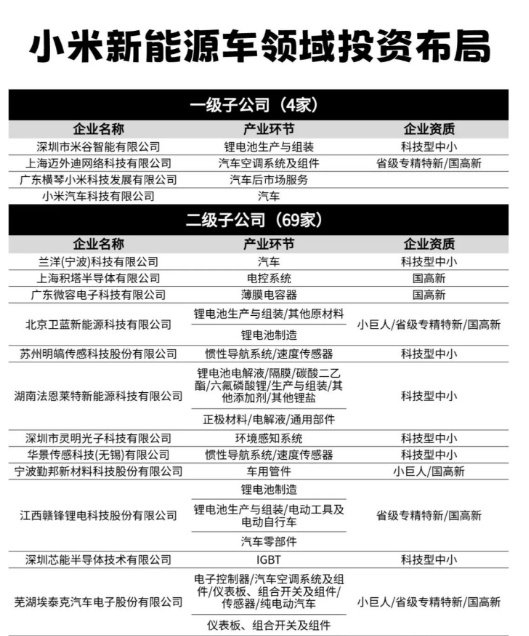这种模式,同样被雷军用到了造车领域。从禾赛和速腾聚创的激光雷达,到赣锋锂电和中航锂电的电池,再到比亚迪半导体的车规芯片,小米的投资触角早已深入汽车产业链的每个毛孔。