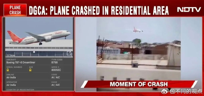 2025年6月,印度印度航空AI171航班的波音787梦想客机,在古吉拉特邦的艾哈迈达巴德机场起飞不久后坠毁,几乎全部遇难。