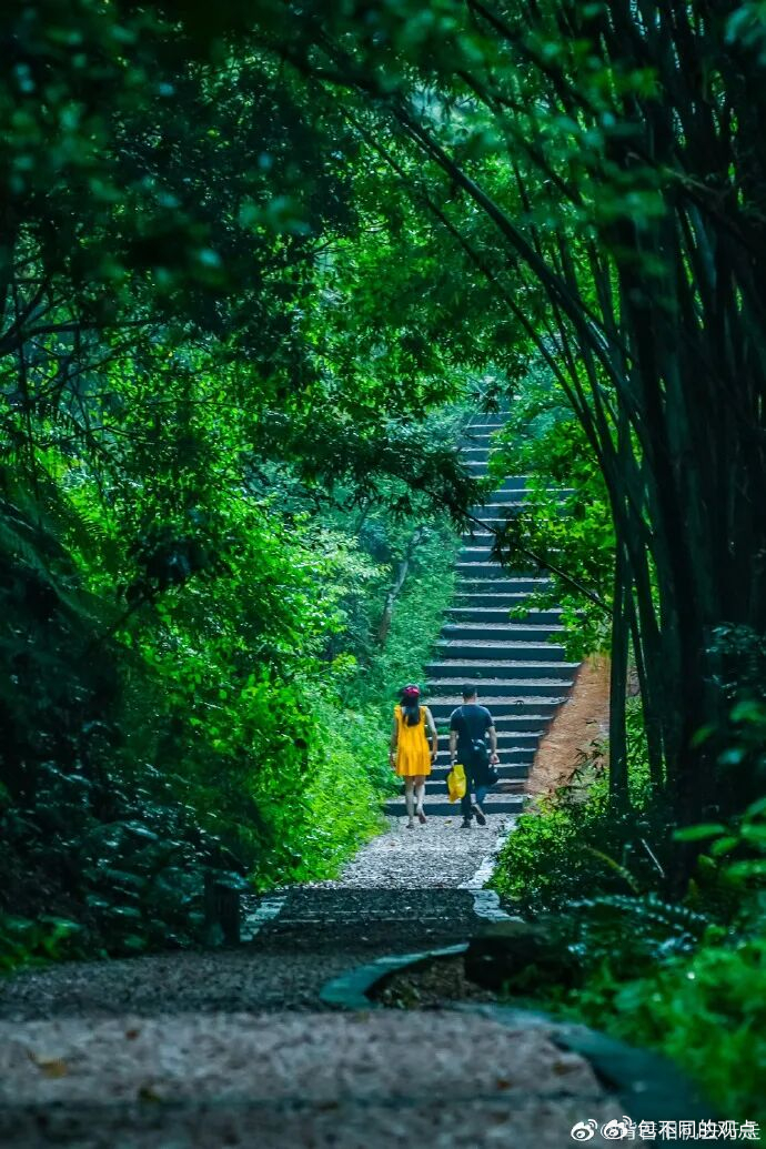 想象一下,漫步步道,石阶还洇着浅湿的痕,青苔沿着阶缝织出绒绒的碧,风是裹着草木气来的,混着竹叶的清香,往衣领里钻的时候,平时再浮躁的心,此刻也能静下来。