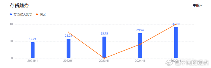 多重因素下,水井坊存货不断走高。2021年中报-2024年中报,其存货分别为19.21亿元、23.21亿元、25.75亿元、29.94亿元。今年上半年,其存货更是来到37.1亿元。
