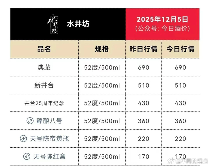 比它贵的茅台、五粮液、国窖等,有送礼刚需与品牌神话;比它便宜的习酒、古井贡等,有性价比与更大规模的市场腹地。水井坊偏偏卡在中间,贵得不够稀缺,便宜得不够痛快。