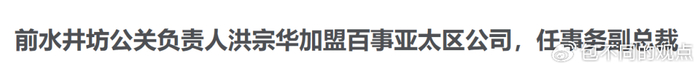 不久前,据多家媒体报道,前水井坊公关“一号位”洪宗华,已正式履新百事公司亚太区公司事务副总裁。