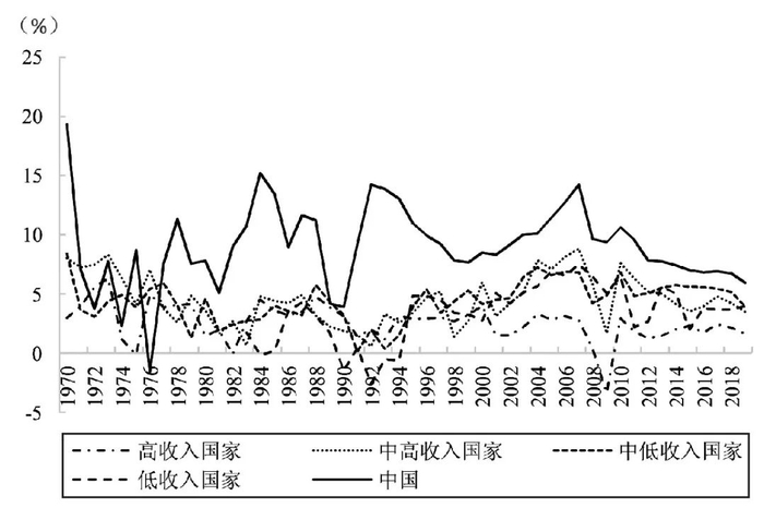 图3 1978—2019年中国与各类国家的年增长率