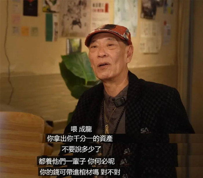 甚至还喊话成龙:“你拿出千分之一的资产,不要说多少了,都够他们一辈子了,你何必呢,你的钱可带进棺材吗,对不对。”
