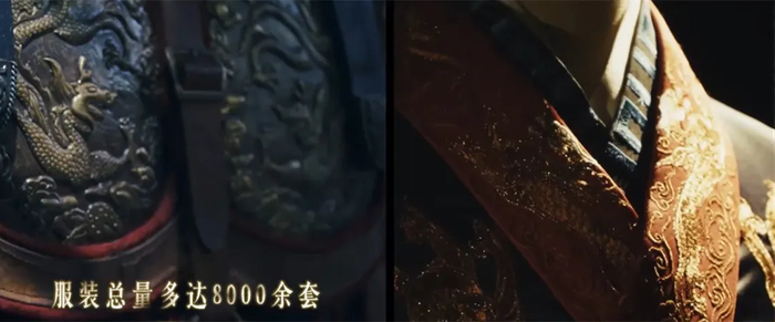 士兵铠甲纹样考据古画,剧组共制作了8000套考究的服饰。