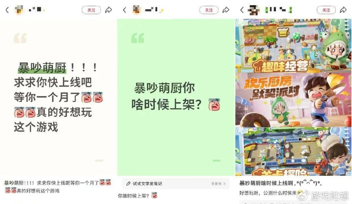 在社交媒体和玩家社群里,催《暴吵萌厨》上线的呼声一直很高,尤其是在《暴吵萌厨》的主要阵地之一“小红书”,不少玩家紧盯游戏进度,甚至调侃自己快有“戒断反应”了。游戏官网显示,公测前玩家预约量已经突破800万。