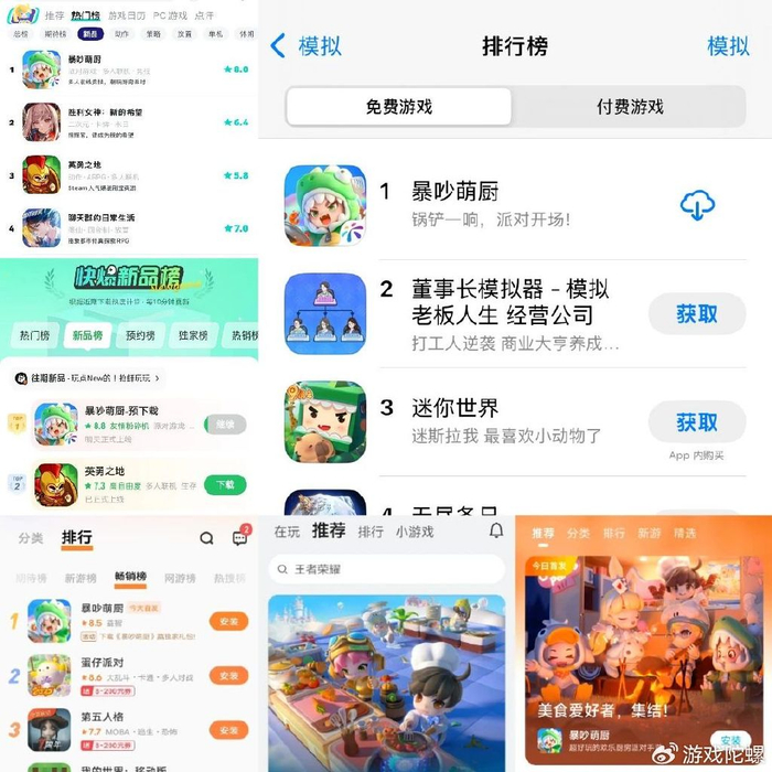 5月28日正式公测的《暴吵萌厨》,就是这么一款产品。它近期的市场表现,算得上是近期派对手游品类里的一匹“黑马”。