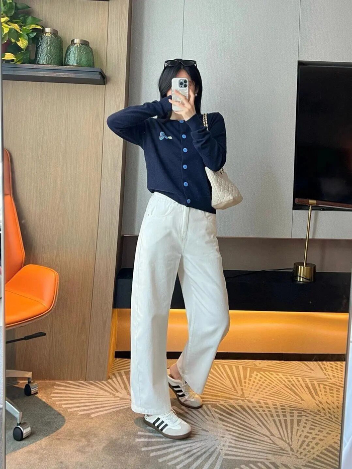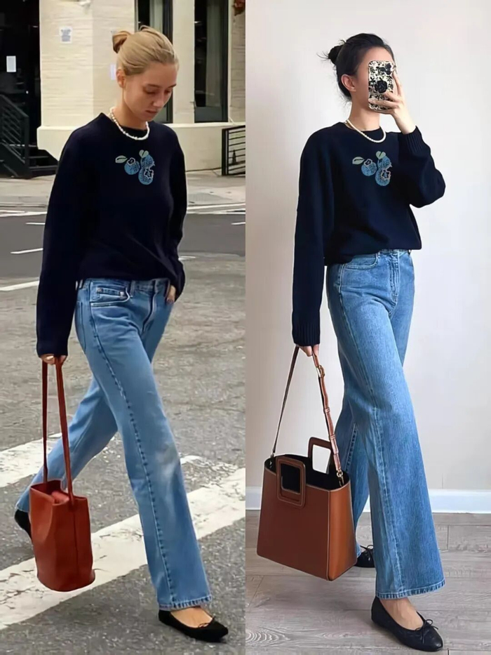 午后,换上蓝色牛仔裤,立刻化身随性又洒脱的美式复古女孩。